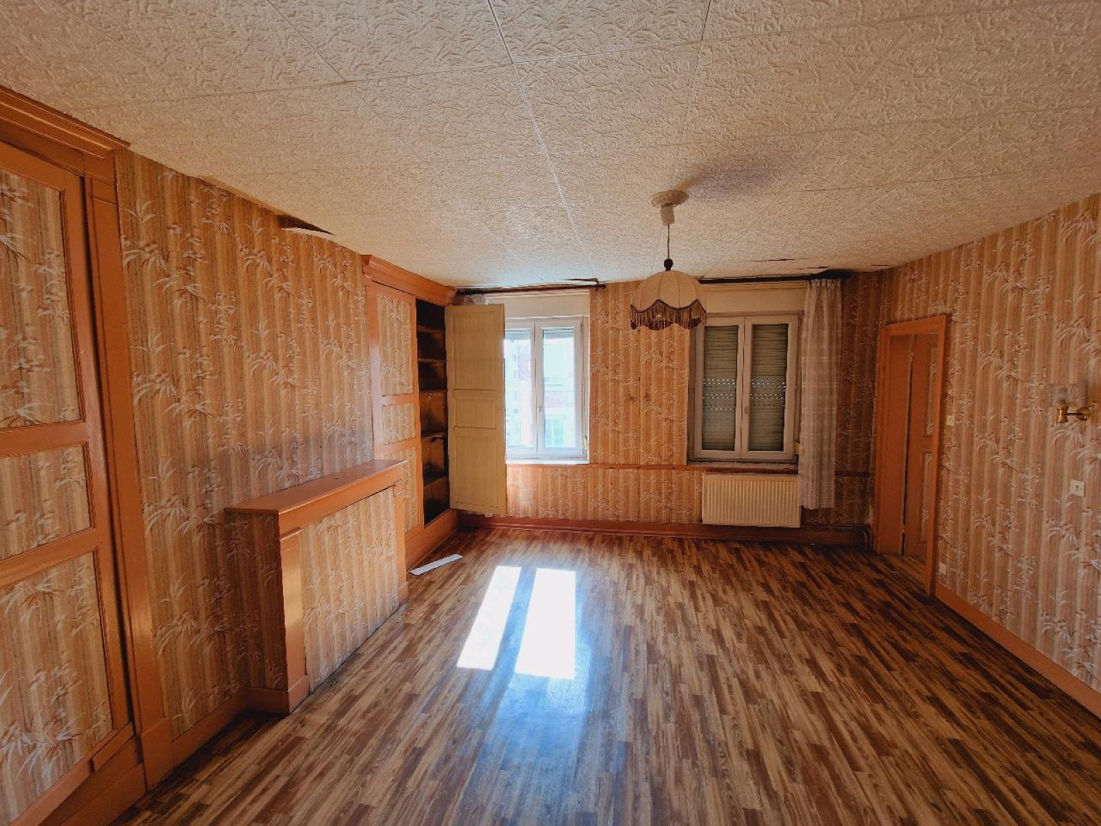 MAUBERT FONTAINE La maison a une surface habitable de 145m² et est mitoyenne d'un côté. Elle est construite sur une parcelle d'environ 370m², dont 250m² restent utilisables comme terrain. Au rez-de-chaussée, on trouve une entrée qui mène à un salon de 20,50m² avec une cheminée en marbre, un séjour de 27m² également équipé d'une cheminée en marbre, une cuisine avec accès à une verrière, une lingerie, une salle de bains et des toilettes. L'étage est accessible par deux escaliers qui mènent à 4 chambres, avec deux espaces fermés sur les paliers offrant plusieurs possibilités d'aménagement. Au-dessus, il y a un grenier aménageable de 70m² avec une hauteur suffisante pour se tenir debout. Le chauffage de la maison est au fuel. Il y a une cave voutée et les fenêtres sont en PVC double vitrage. Il y a également une dépendance. La toiture est en ardoise fibro ciment. La maison nécessite des travaux de rénovation.