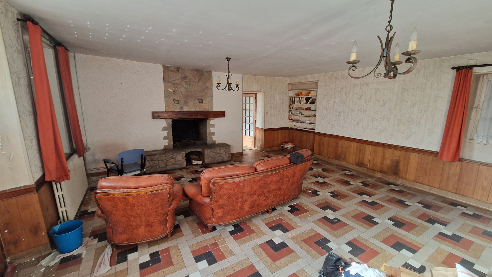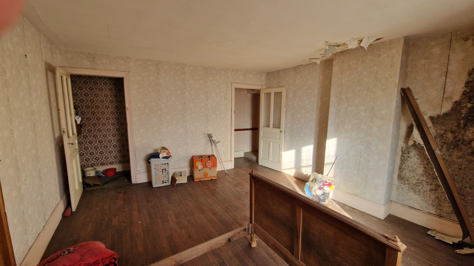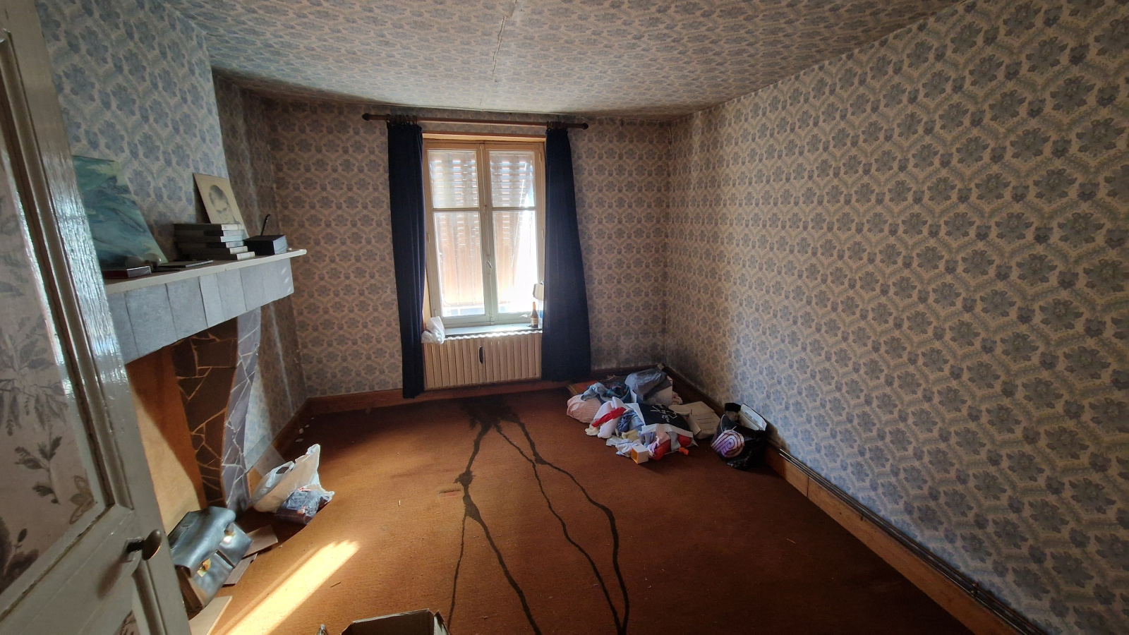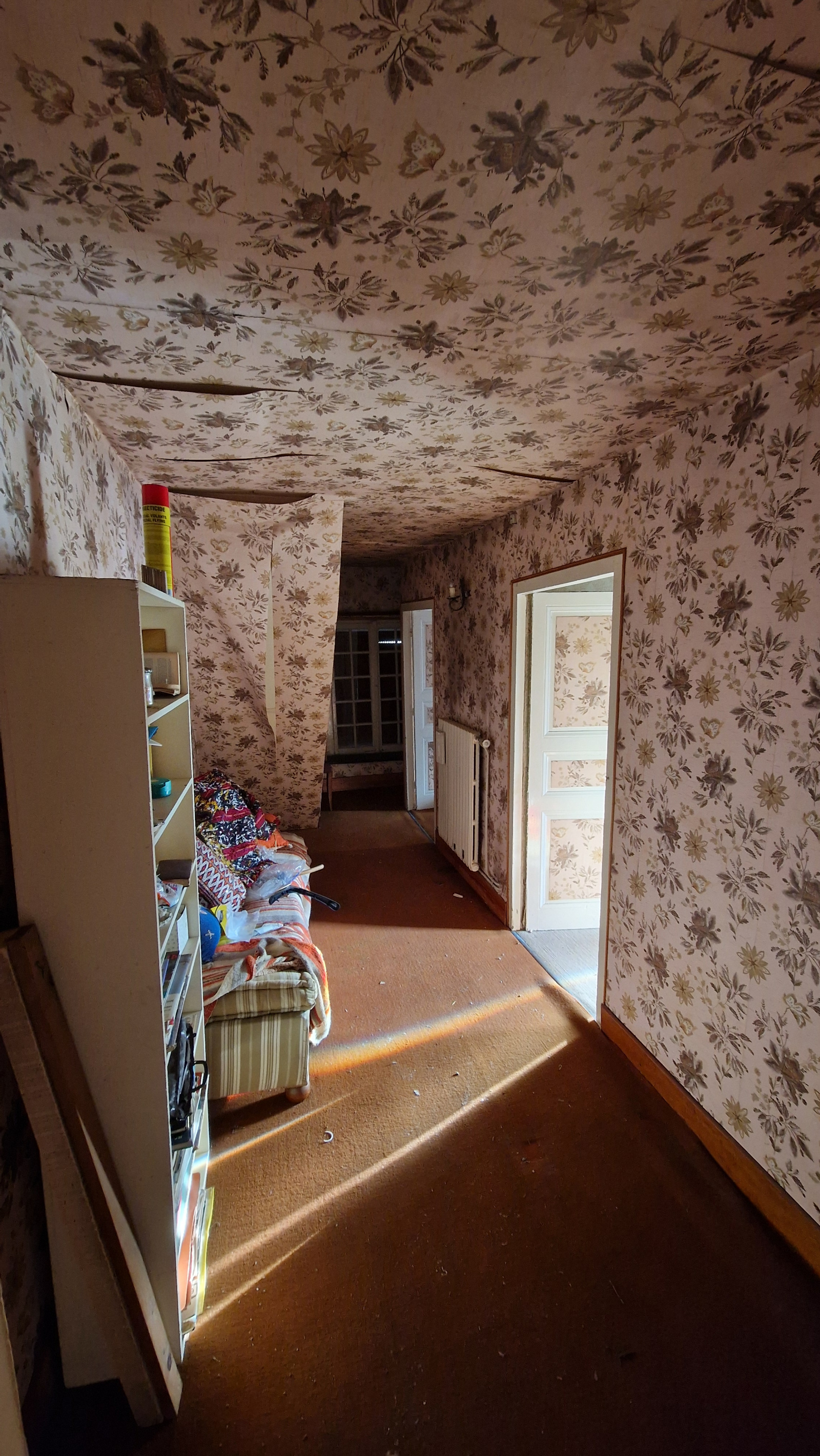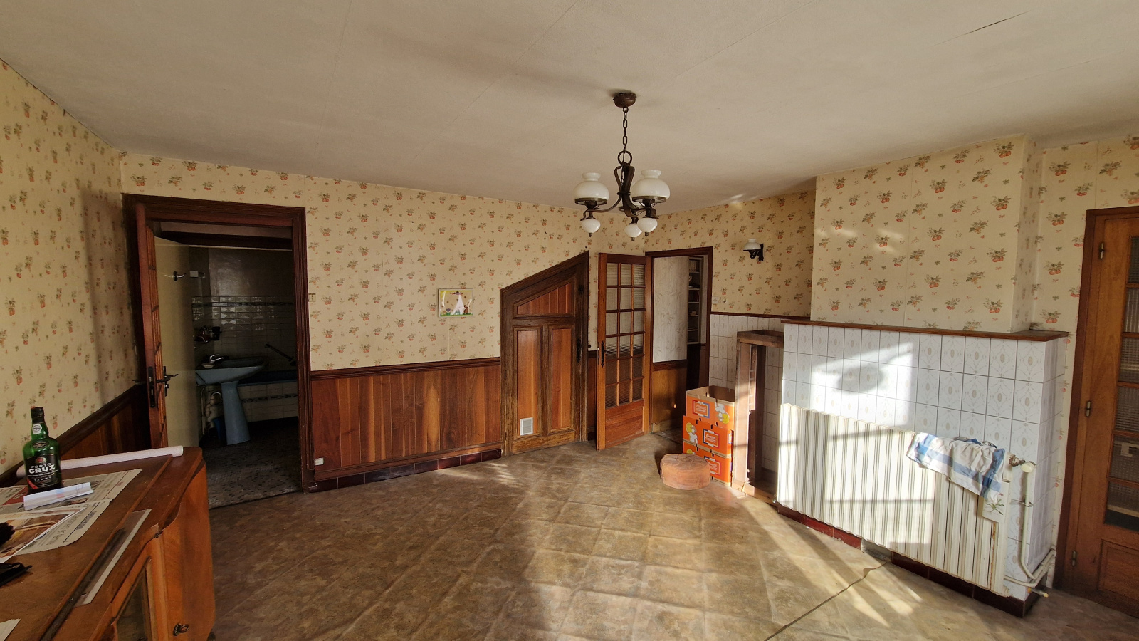 Maison mitoyenne avec un beau potentiel à rénover comprenant au rdc : Cuisine, pièce à vivre, salle de bains avec wc. Etage : Palier desservant 2 chambres. Au-dessus : 2 greniers aménageables. Cave voûtée. Terrain non attenant.