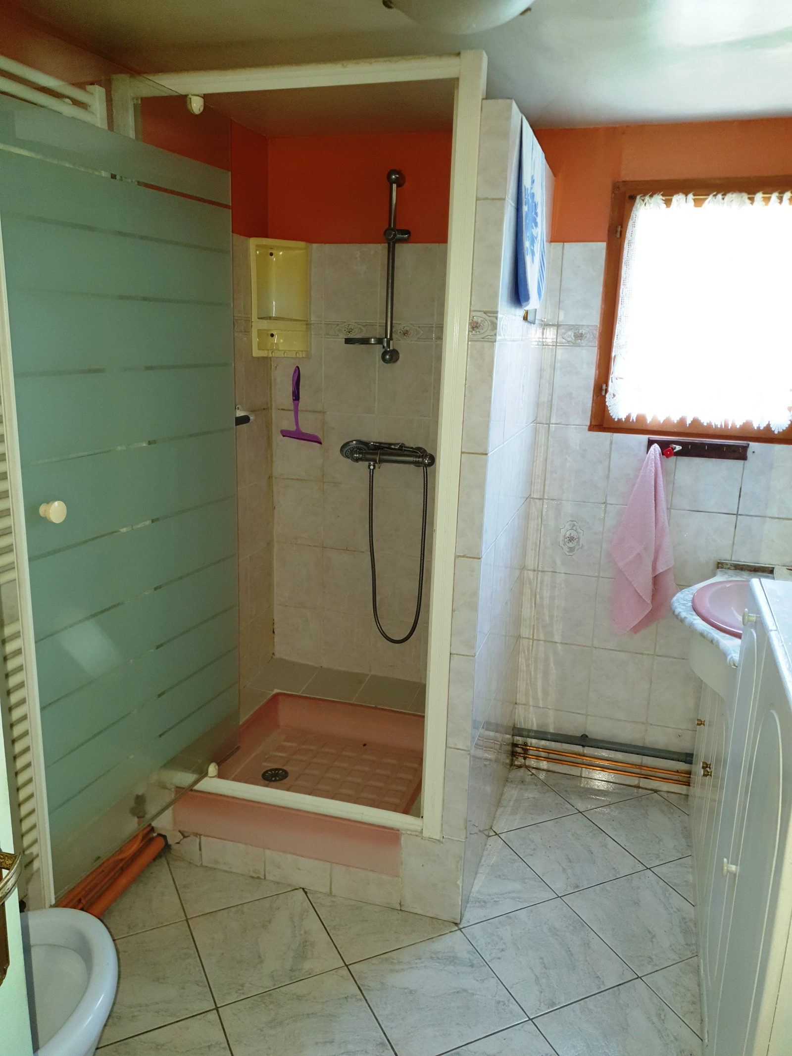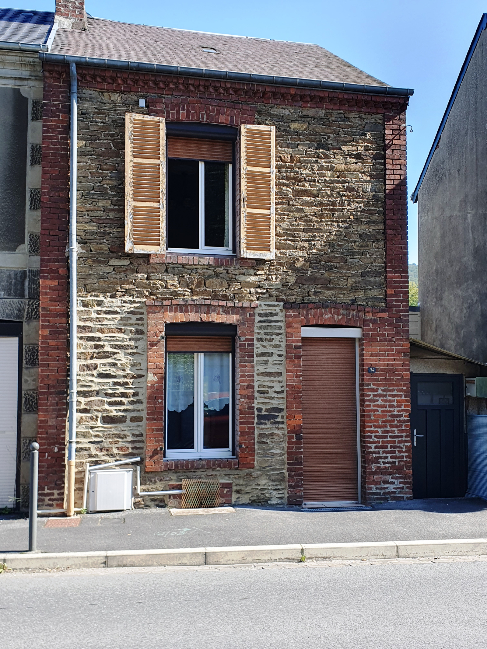 BOGNY SUR MEUSE Maison mitoyenne d'un côté comprenant au rdc : Entrée, cuisine aménagée, salle de douche avec wc, salon, séjour. 1 er étage : 2 chambres dont une passante. 2ième étage : Chambre. Sous-sol : Atelier, wc, buanderie/chaufferie. Terrasse. Terrain clos. Cc gaz. Travaux à prévoir.