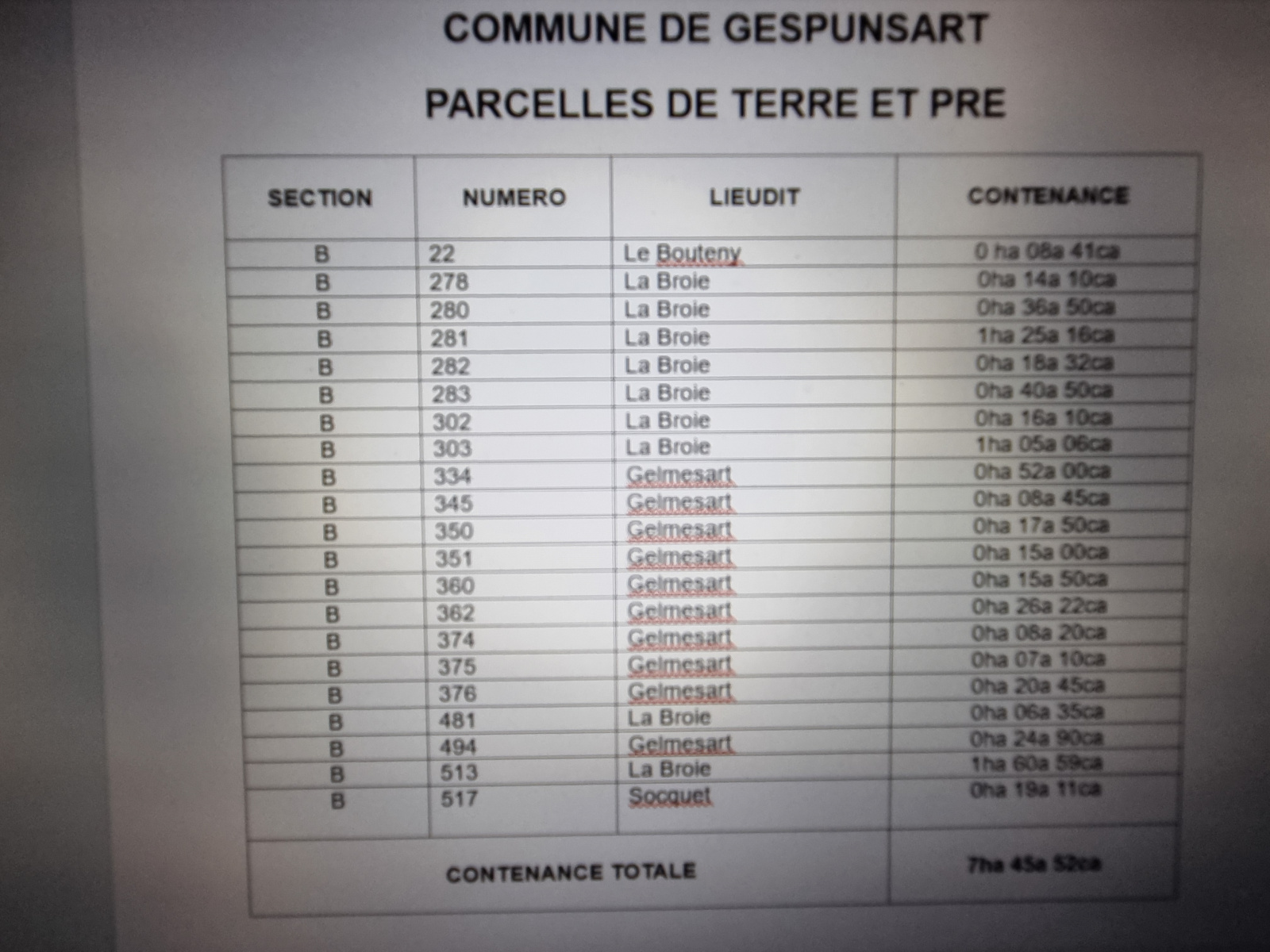 Ensemble de parcelles de terre et de pré idéalement situées sur la commune de Gespunsart, aux lieudits « La Broie », « Gelmesart », « Le Bouteny » et « Socquet ». L'ensemble d'une surface totale de 7 hectares 45 ares 52 centiares, offrant de nombreuses possibilités pour vos projets agricoles ou de loisirs. Un cadre naturel préservé, au cœur d’un environnement paisible et verdoyant.